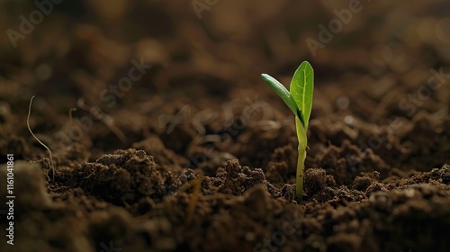 A single green sprout growing from cracked dry earth, representing resilience, new life, and hope in challenging conditions. Symbol of growth and renewal in nature.