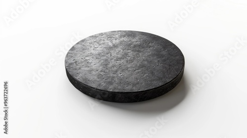 A single hockey puck sitting on a clean white surface, great for sport-related designs or minimalist compositions