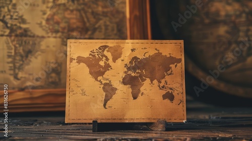A single map on a wooden background with a blurred backdrop suitable for advertising