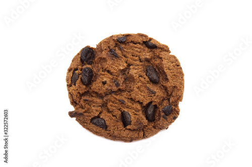 A single of chocolate chip cookies crunchy delicious sweet meal and useful biscuits isolated on white background. Homemade pastry.