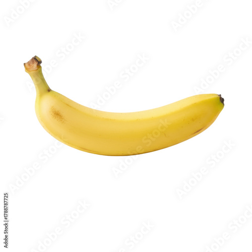 A single organic banana fruit isolated on a black studio setting showing the curve shape
