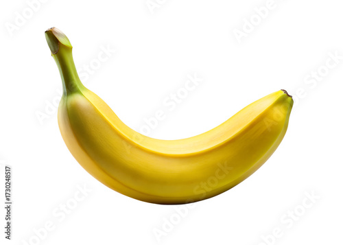 A single ripe yellow banana with a curved shape isolated on a transparent background isolated on transparent background