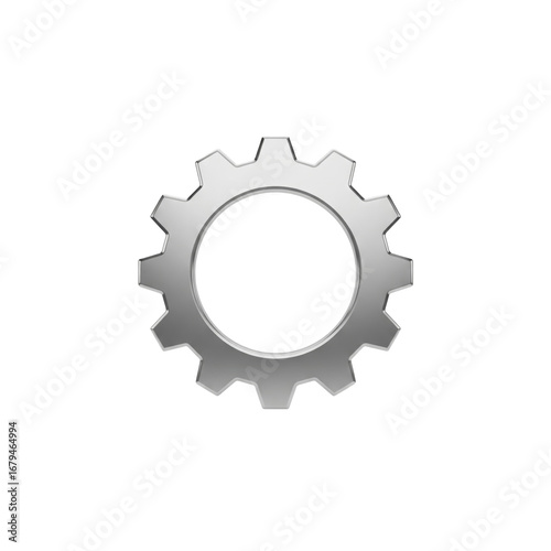 A single silver gear with multiple teeth isolated on a plain transparent background view