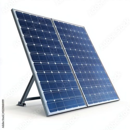 A single solar panel standing upright with visible grid details and a realistic metallic frame, isolated on a clean white background