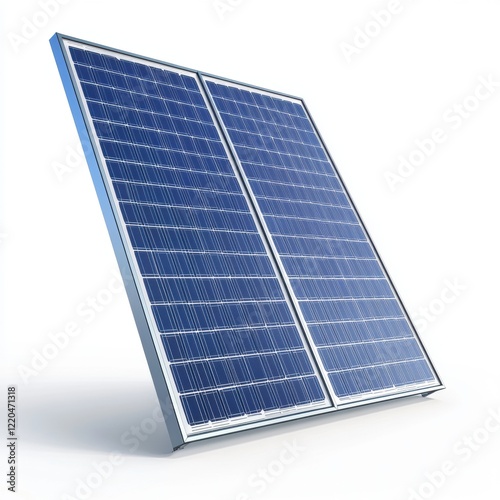 A single solar panel standing upright with visible grid details and a realistic metallic frame, isolated on a clean white background