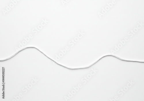 A single strand of gray thread or string laid in a wavy line on a plain white background surface view