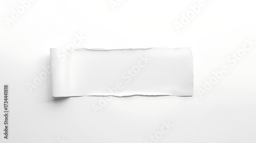 A single torn rectangular piece of white paper with rough edges, set against a clean white background, featuring no text or patterns