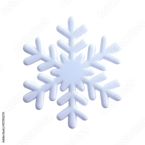 A single white snowflake with six rounded arms isolated on transparent background