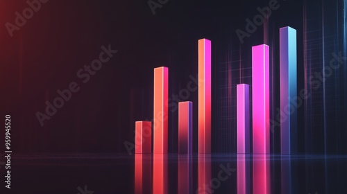 A sleek 3D bar graph with glossy columns of different heights, set against a dark background, emphasizing data visualization in finance and business.