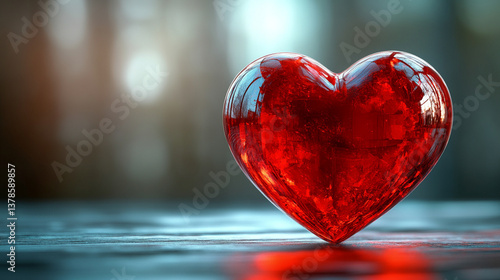 A sleek 3D glass heart floats against a clean background symbolizing love's transparency fragility and strength Modern aesthetics reflect purity emotions and deep connections in relationships