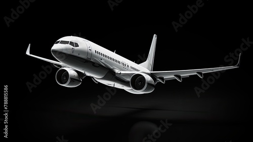A sleek and sophisticated private jet soars through the dark sky. Its silver fuselage and gleaming engines are perfectly illuminated by the moonlight.