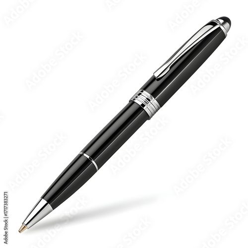A sleek ballpoint pen is displayed in high resolution, isolated on a white background,