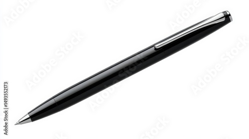 A sleek black pen resting on a clean background. Perfect for writing notes or signing documents. Enhance your office supplies collection.