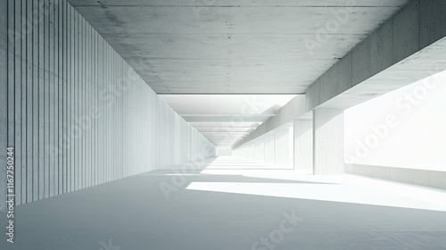 a sleek concrete hallway with natural light pouring through large windows creating a minimalist and serene modern design