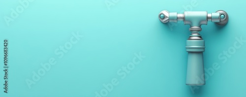 A sleek, mint-colored faucet mounted on a smooth turquoise wall, creating a fresh and modern aesthetic.