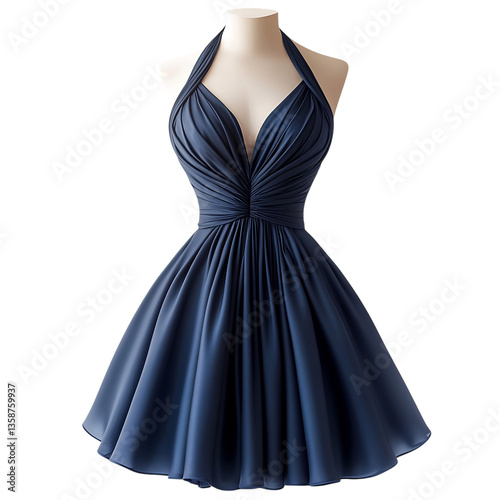 A Sleek Navy Blue Halter Dress Isolated on Transparent Background
