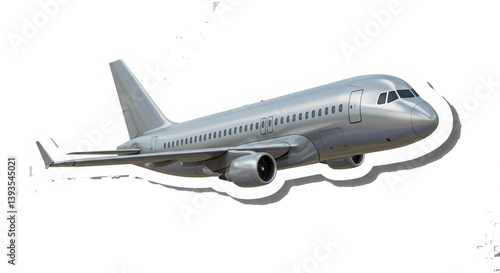 A sleek silver airplane soaring through the sky, a symbol of travel and adventure, captured in a crisp, clean image with a subtle white border.