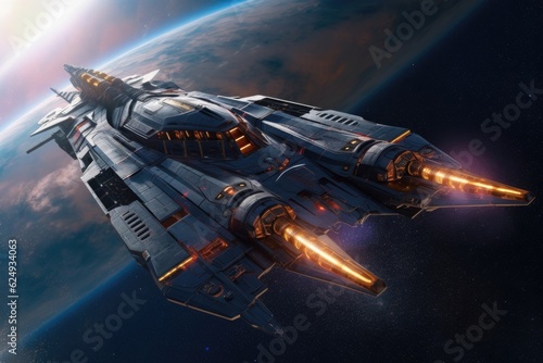 a sleek spaceship exploring a distant galaxy, created with generative ai