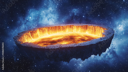 A Slice of Earth Suspended in Space, Layers of Rock and Magma Visible, Against a Starry Background