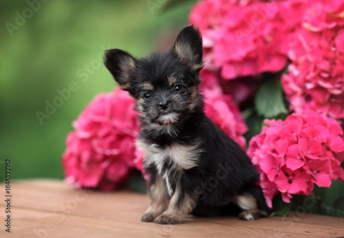 A small funny puppy in the garden