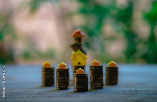 A small house on a pile of coins is used as an asset, financial concept for mortgage, financial investment fund and home loan, interest rate.