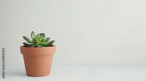 A small potted plant placed on one side of a plain white or light-colored surface, with the rest of the image left empty