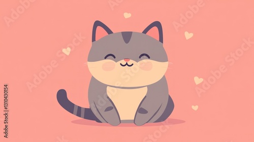 A smiling cartoon cat surrounded by small floating hearts