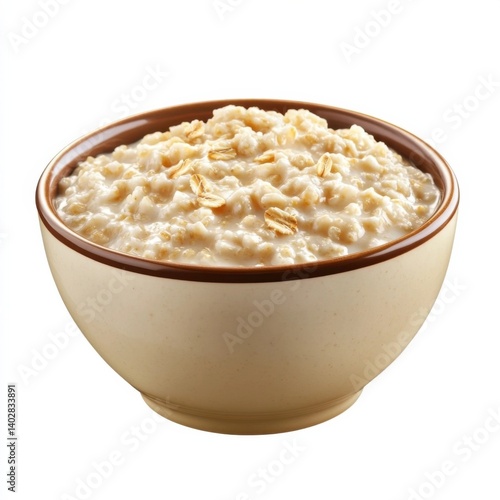A smooth creamy bowl of oatmeal with a hint of golden brown edges, isolated white background, hyperrealism art style