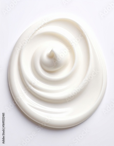A smooth, creamy swirl of white substance resembling lotion or a cosmetic product on a light background.