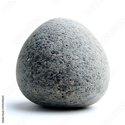 A smooth gray stone sits on a white surface displaying its texture