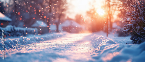 a snowy village, onset of winter, snow on roofs,