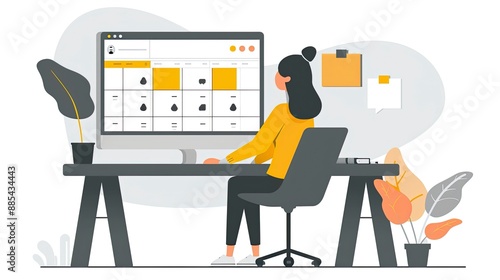 A social media manager creating and scheduling posts using a content calendar tool, with a well-organized interface.