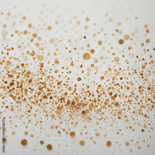 A soft-focus watercolor of tiny golden specks floating on a white background.