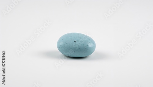 A solitary light blue pebble stone set against a white backdrop, artistic element for minimalistic design