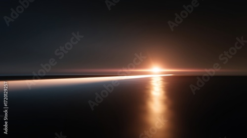 A solitary ray of light pierces through the darkness, illuminating a polished surface, evoking feelings of hope and anticipation.