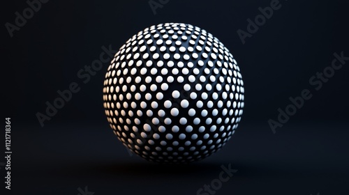 A spherical object covered in a pattern of white dots against a dark background, creating a visually striking contrast.