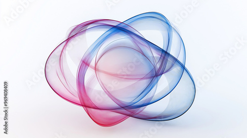 A spherical object, possibly a globe or a reflective sphere, at its center. Surrounding this central sphere are multiple intertwined, translucent, and colorful lines, resembling atoms or orbits