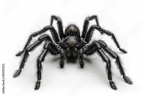A spider clipart, creepy crawler, 3D realistic illustration, black and hairy, isolated on white background