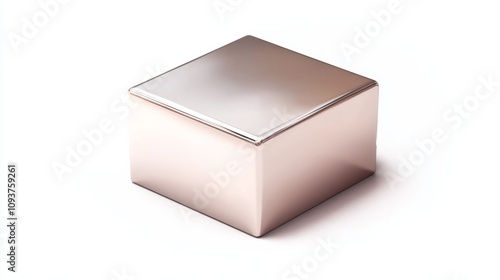 A square metallic box with a smooth, glossy finish and soft reflections, sitting on a white background