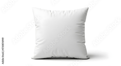 A square, white pillow is isolated on a white background with a subtle shadow.