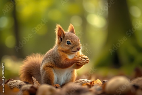 a squirrel eating nuts in the forest