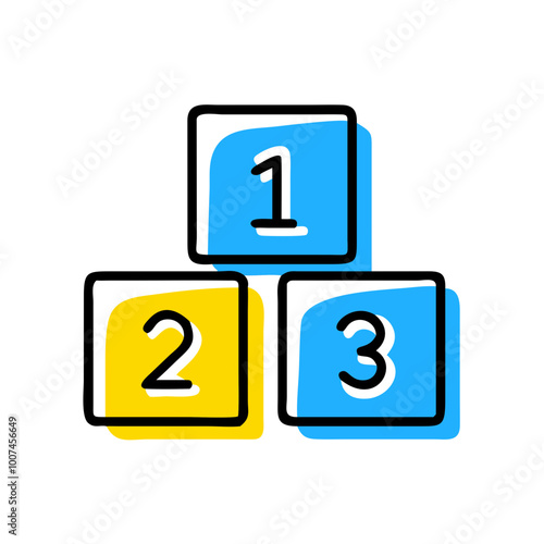 A stack of blocks with numbers 1, 2, and 3 on them. The blocks are arranged in a pyramid shape