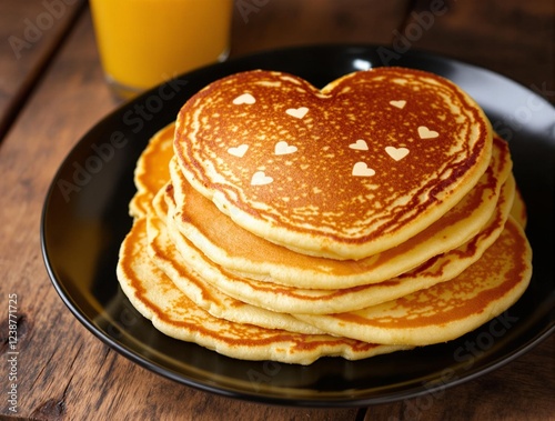 a stack of fluffy pancakes topped with a heart-shaped drizzle of syrup, perfect for breakfast or brunch moments