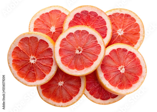 A Stack of Juicy Red Grapefruit Slices on White Background Fresh Citrus Fruit Healthy Eating Vitamins Breakfast Snack