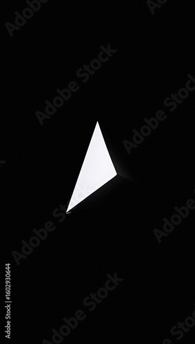 A stark white triangle isolated against a solid black background creating a minimalist contrast art piece