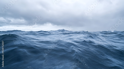 A stormy horizon with endless waves under churning ominous clouds creating a vast and foreboding seascape.