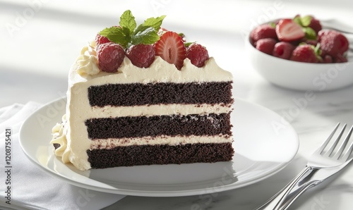 A strawberry chocolate cake on the plate