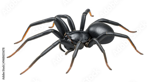A Striking Arachnid's Pose: Capturing the intricate form and detail of a dark-bodied spider, this image reveals a fascinating glimpse into the world of these often-misunderstood creatures.