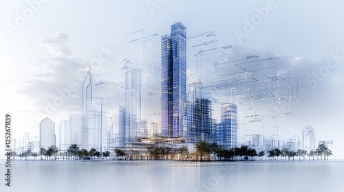A striking architectural rendering of a modern skyscraper amidst a cityscape, showcasing innovative design and clear blue sky.