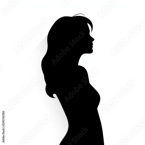 A striking female silhouette captures the essence of femininity and strength, depicted in an elegant minimalist style against a clean background, emphasizing graceful curves